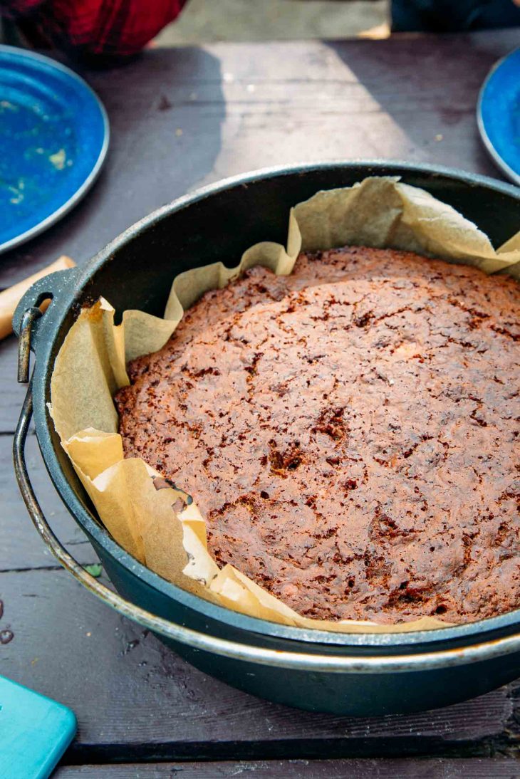 - Bake: Bake for 50-60 minutes, or until a wooden skewer inserted into the center comes out clean. Check for doneness after 45 minutes, adjusting coal placement to prevent burning if necessary.